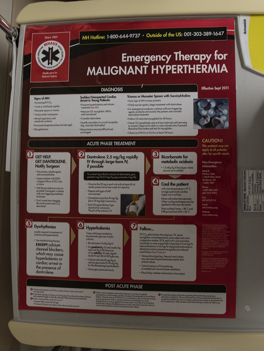 - Performing a thorough preoperative risk assessment and knowing the signs and symptoms of MH.